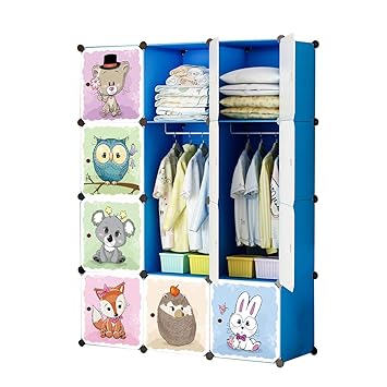 Maginels Children Wardrobe Kid Dresser Cute Baby Portable Closet Bedroom Armoire Clothes Hanging Storage Rack Cube Organizer Large Blue 8 Cube 2