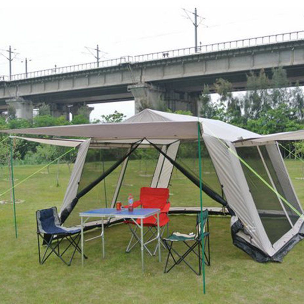 Us 68 33 On Sale Hot Sale Huge Space 5 8 Person Beach Hiking Party Family Outdoor Camping Sunshade Sunshelter Awning Tent Awning Pergola In Tents