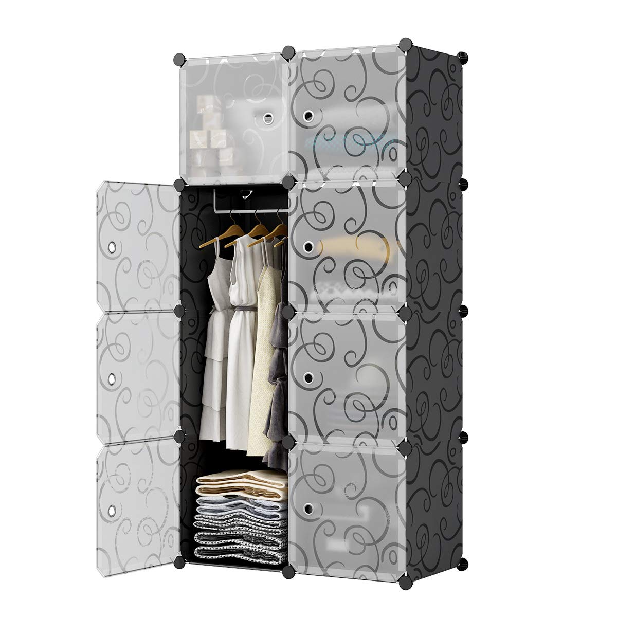 Kousi Wardrobes For Clothes Wardrobe Black Wardrobe Closets For Bedroom Portable Closet Wardrobe Closet Bedroom Armoire Dresser Black White Door 5